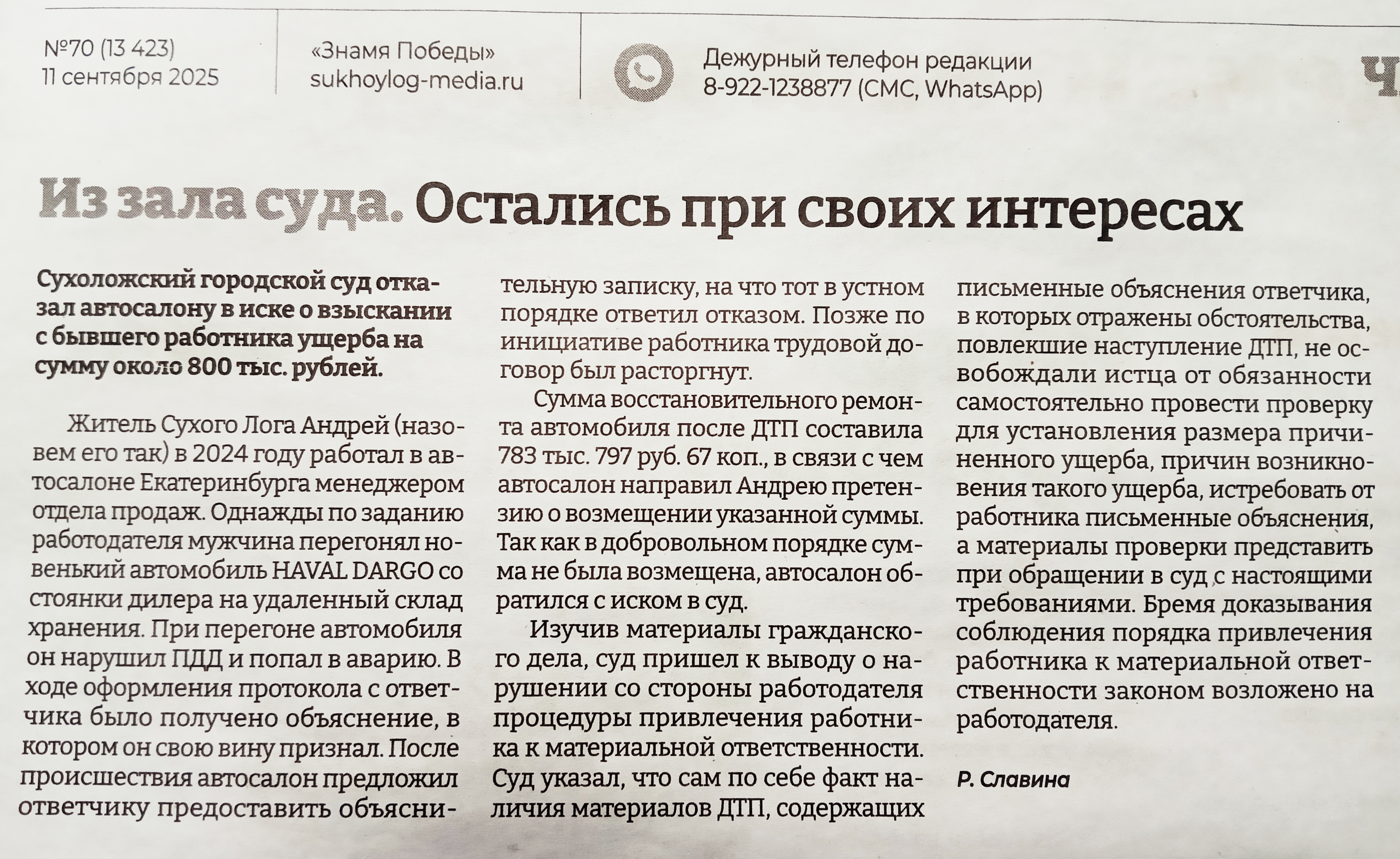 Публикация в газете "Знамя Победы" от 11.09.2025 рубрика "Из зала суда"![]() |