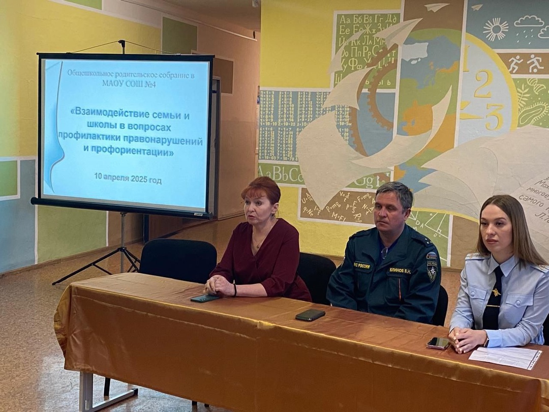 10 апреля в МАОУ СОШ № 4 состоялось общешкольное родительское собрание на тему «Взаимодействие семьи и школы в вопросах профилактики правонарушений».![]() |