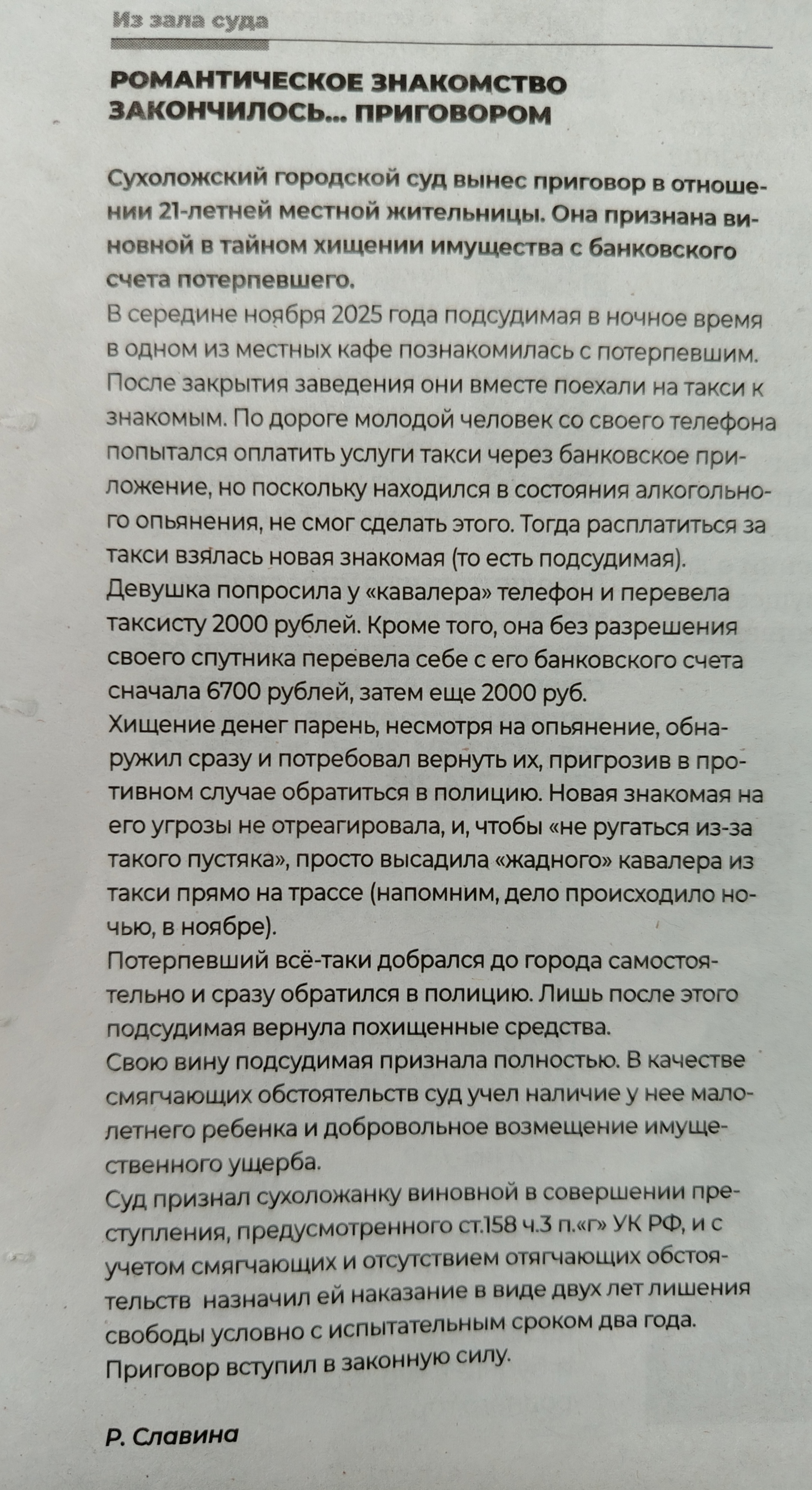 | Романтическое знакомство закончилось ... приговором | версия для печати |