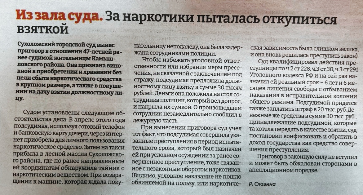 | Из зала суда. За наркотики пыталась откупиться взяткой | версия для печати |