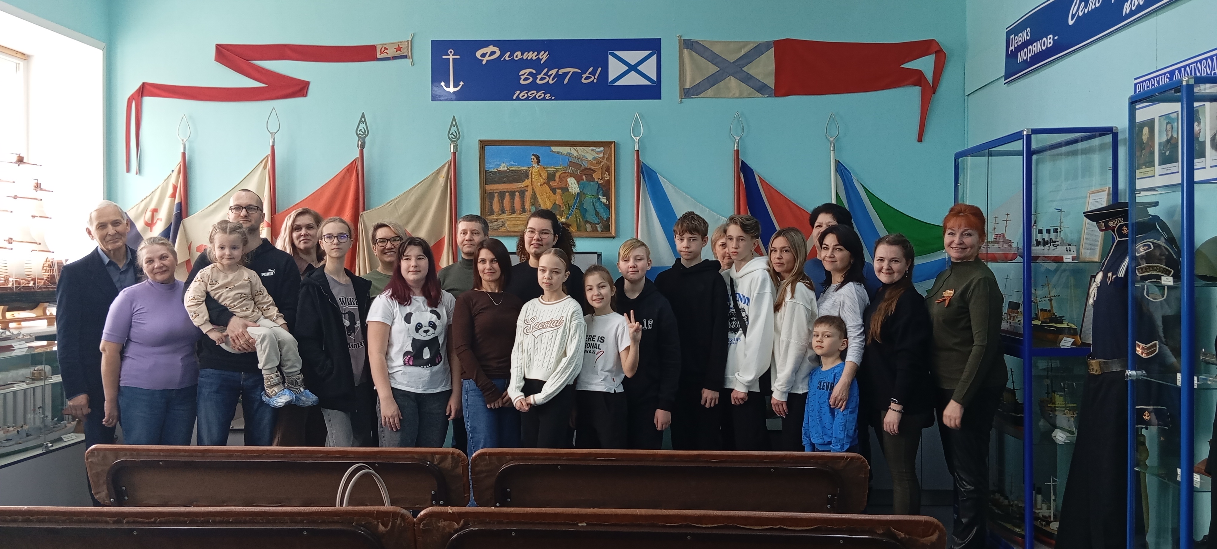 рассматривали модели кораблей разных эпох, форменное обмундирование и личные
